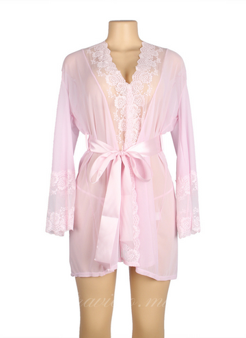 Pink Lace Sexy Hollow Out Back Robe with Panties